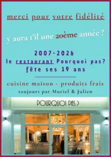 Mardi 03 février 2026 En 2026, le restaurant Pourquoi pas ? célèbre 19 années d’aventure, de cuisine maison et de bons moments partagés. Au fil des années, Pourquoi pas ?…