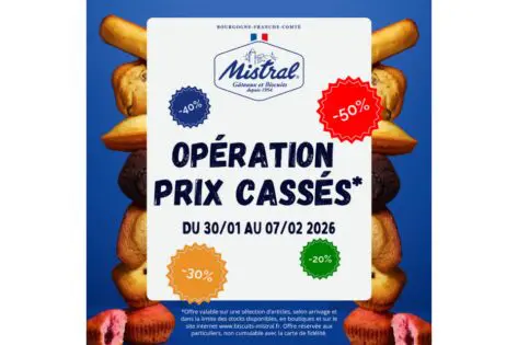 🔥 Opération Prix Cassés chez Mistral ! Jusqu’à -50%* sur une sélection de gâteaux, biscuits & autres gourmandises🍪 📅 Du 30/01 au 07/02/2026➡️ En boutique et sur biscuits-mistral.fr *Voir conditions détaillées en…